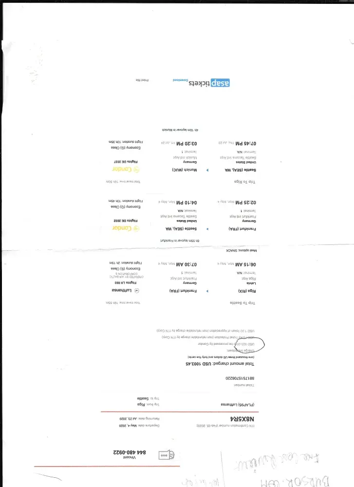 On February 5/2020 I fought ticket To Seattle, Wa from Riga Latvia.