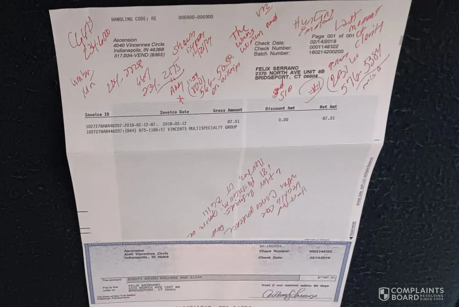 Account number: 1027278A8446207 ST. VINCENT MULTISPECIALTY GROUP