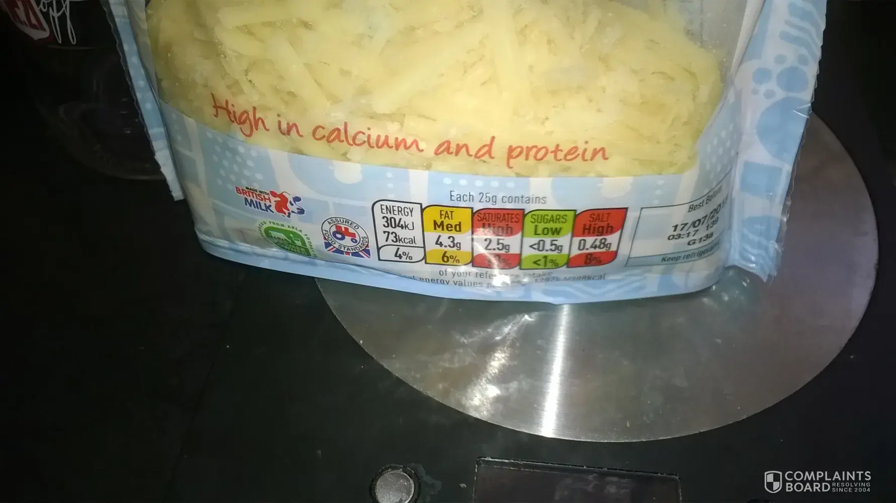 I recently bought this cheese from one of your stores the date on the cheese is 17/7/18 ive attached photos of the mouldy cheese.I weighed it just to show you it was newly opened.