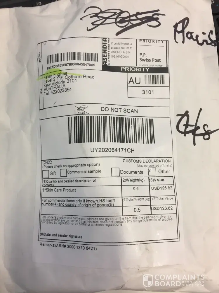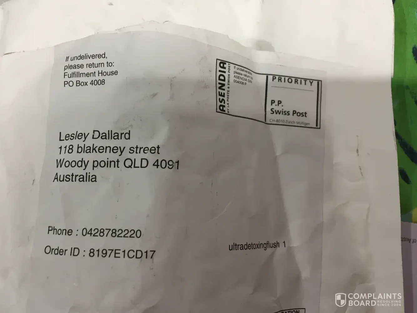I have been unable to find the original advertisement on Facebook from which I ordered the Ketobliss for $5.95, I did not receive a tax invoice for it and have been unable to find any contact details for 'Promote Yourself First'. I have now checked the photo I took of the second package and it is from Asendia. I can provide the photo of this package if required.