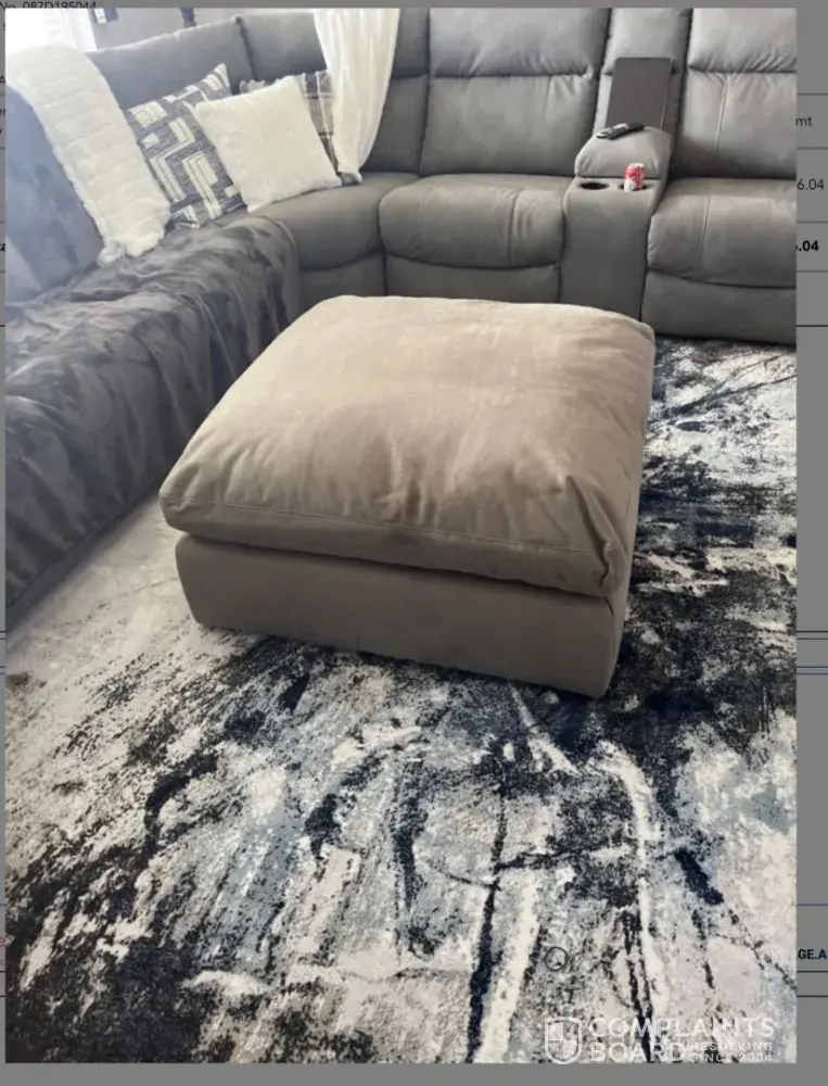I said why should I have to wait 5 weeks to use my furniture’s as told. I I I said let me pay for the tech and again she said no.