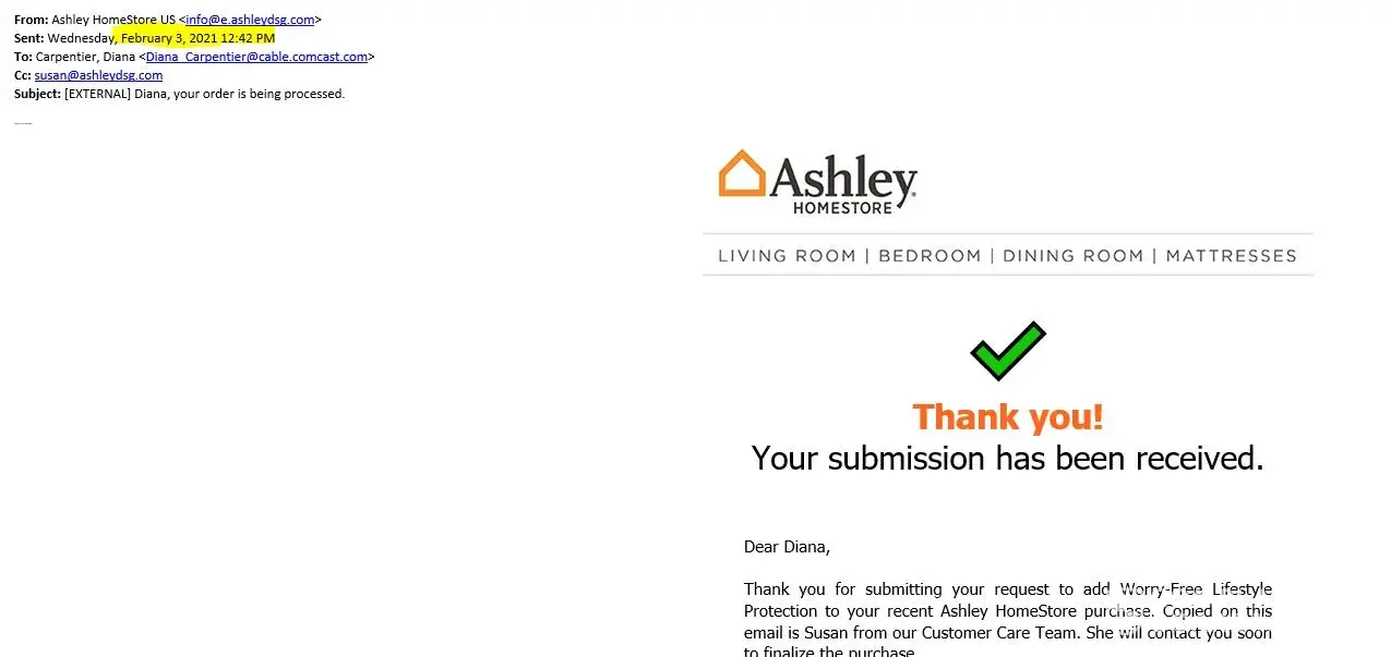 Really frustrated and inconvenience caused is disgusting and on top of it have to follow up is shameful on Ashley's part.