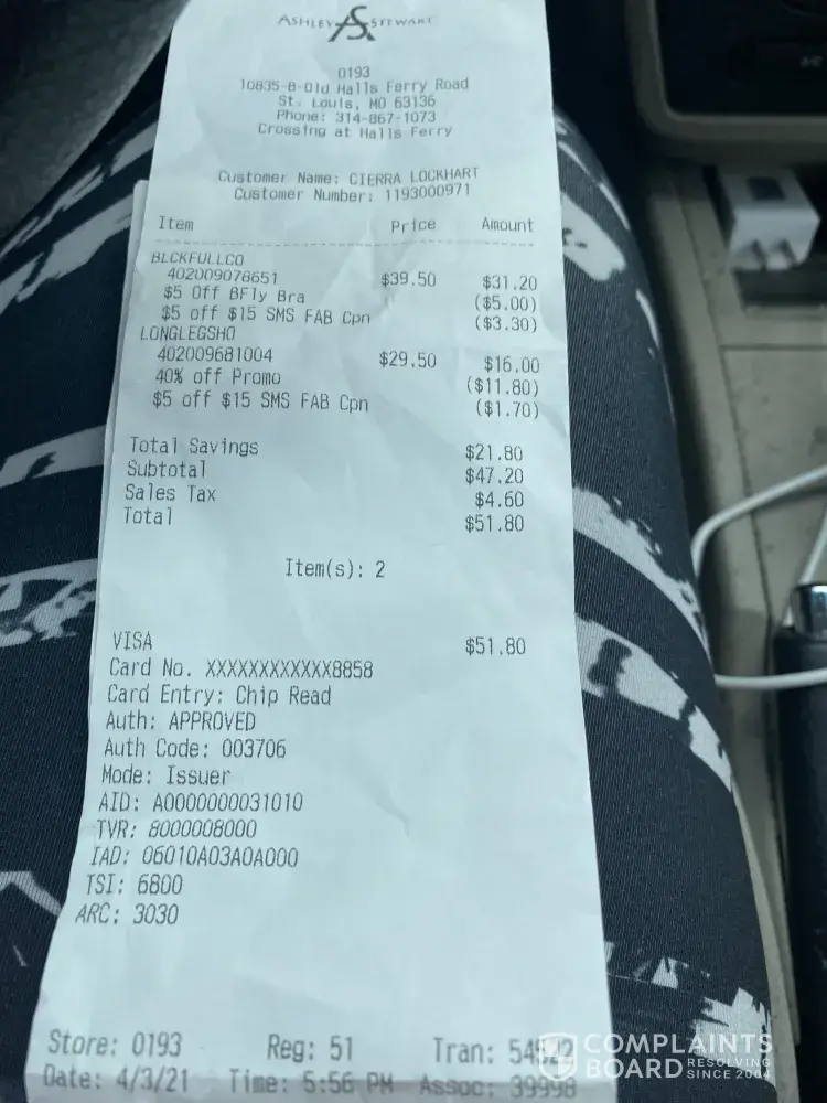 Read full complaintAbout Ashley Stewart
