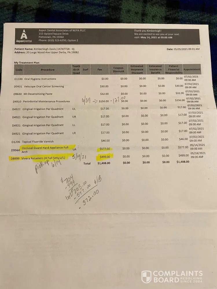 I paid their price of 7, 738.60 dollars for 20 extractions, temporary dentures, and permanent dentures on 7-17-21. They extracted the teeth. They made dentures that didn't fit, hurt my mouth. I could never use them. 2 months later they installed a liner that ruined them permanently, because then there was a gap of eighth inch in front and they did not stay in place any way. The last appointment they made Matthew (no name) he refused to give his last name, came in and yelled at me saying he would not fix or replace them or refund my money for them or the permanent ones in 3 more months that I already paid for. Then yells get out I'm calling the police 5x. I left. He also stole my 20 teeth and 2 bridges i told him to save for me. This is Aspen dental of Grants pass, Oregon. It will cost me 5, 000 dollars to get them now from a professional office, the temporary and permanent. I have been 3 months with no teeth and it looks like it will be 6 months till I do. He is a theft, and a fraud . I'm going to a oral surgeon to repair the broken bones and protruding bones in my mouth in 7 weeks. Also he cut a 2 inch slice down my gum which was ridiculous. Took 16 days and 3 antibiotics to stop the infection. 3 months after the incision it is still not closed. Can you please help me get my 5, 000 dollars back from him, or something ?