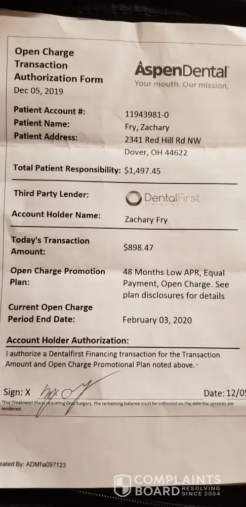 Read full complaintHigh pressure tactics and stating I had periodontal disease