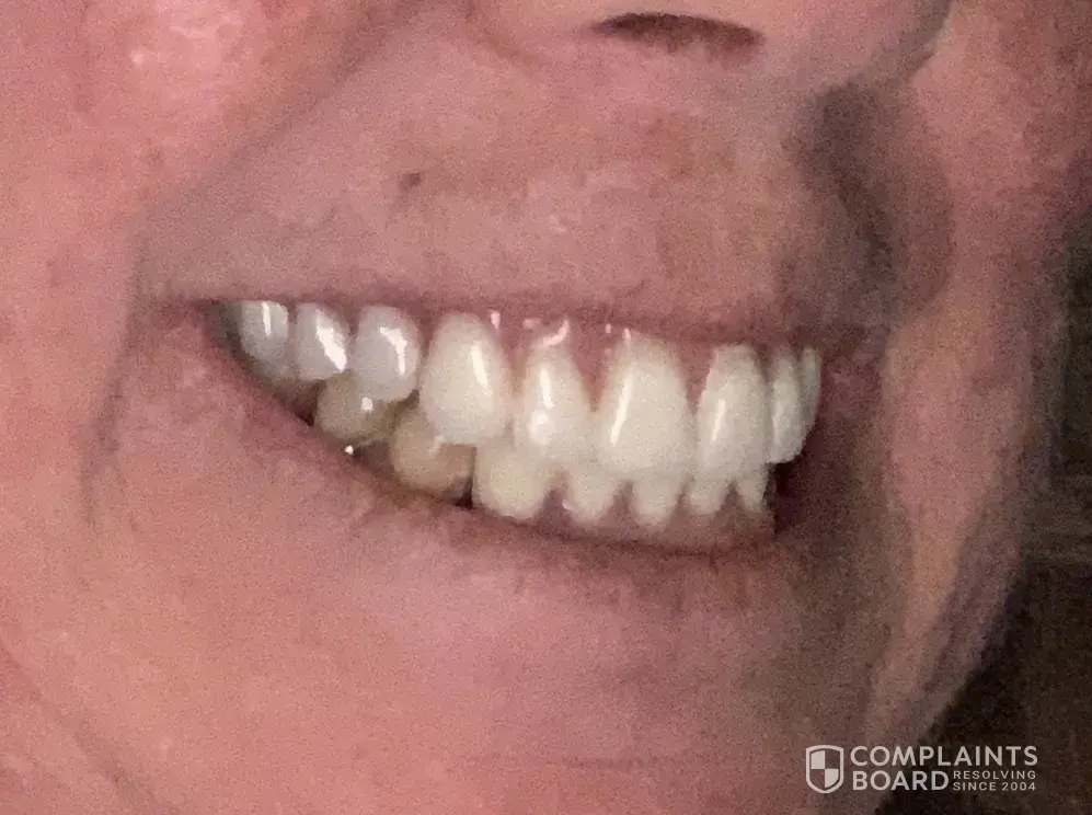 Paid thousands of dollars. First temporary denture was to big for my mouth and they had to make a new one. Then my first permanent denture was beautiful and completely straight but the right side was to far out. They ordered a redue and now the denture is fine on the right side but instead of the teeth being even the right side are long and the left side...