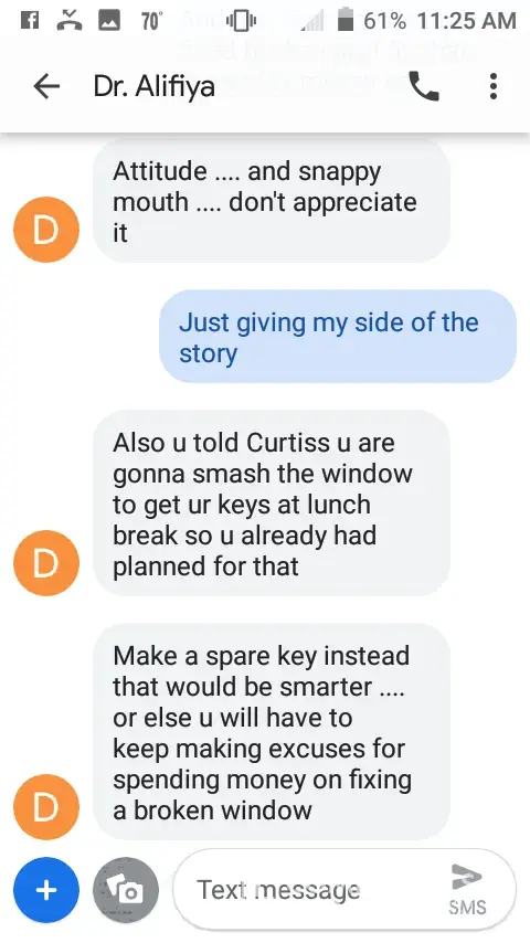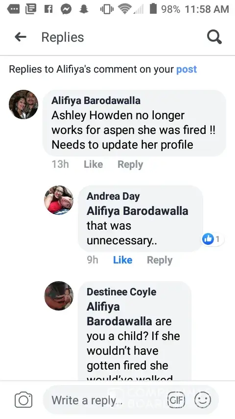 I was an employee of Aspen Dental from July 2013 to May 2019. I have dealt with a lot of stress and discouragement from the Mt Pleasant office. In May I was undergoing some personal health conditions that made me unable to go to work to lead to termination from Dr. Barodawalla. I have nothing but negative feedback from the dentist. I received text messages that were rude, discouraging, and uncalled for. Which I have pictures of them all from text messages. Here recently the dentist had crossed the line and posted personal information of mine on my Facebook page. Down talking me and making me feel less of a person which I took screenshots of before she had removed her comments but with Facebook being the number one social media sight everyone had seen what she had posted. I am hurt. The names she has called me has lead me to believe that I will never be a good enough dental assistant again. I haven't been there since May of this year and I am still receiving negative comments from her that I don't appreciate. To top it off I really do not appreciate being accused of using marijuana and her saying that I lied about how far along I was pregnant. This office was horrible to work for and now I see why the office could never be consistent with having employees. I honestly don't know how I made it as long as I did.