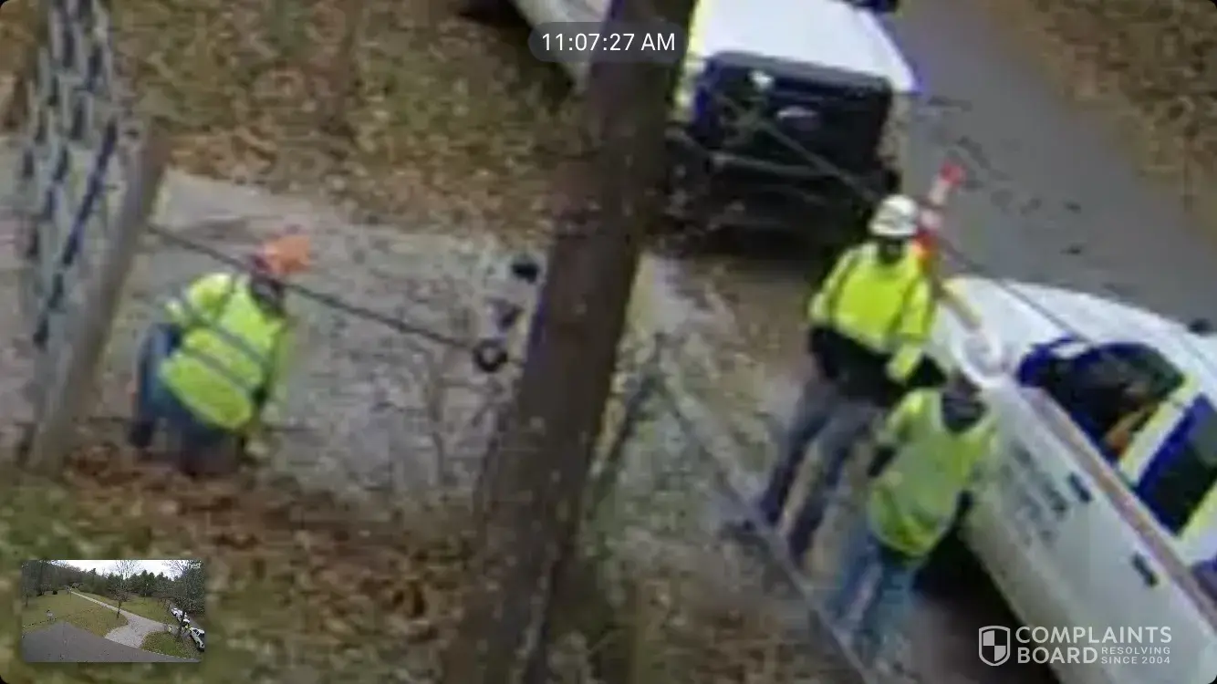 Big Stoney Creek VA. Today at 8:43am a crew of Aspundh entered my driveway from access point on my property. There were access points from which they could enter. I see them on my camera and tell them to leave. One person looks up at the camera and completely disregards. Then they saw a branch of a tree and force open my gate which is locked with a lock. Therefore damaging the gate. Another person is video rolling up a phone cable that he carries to the top of driveway at the gate and throws it down. They at this point have torn up the grass from the constant rain it is very soft. They come back and appear to be attempting to repairing the gate. Once again they were addressed through the camera speaker. The person onsite tells someone not to worry nobody is home they are talking through a cell phone. Really...this is how your crew addresses an issue of property damage and trespassing? Everyone should beware of the danger of strangers who disregard personal property and safety!