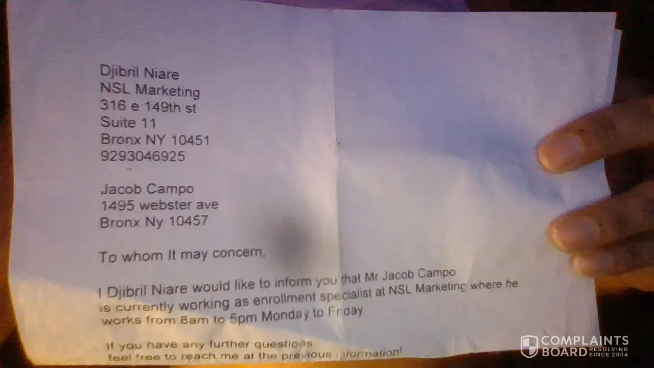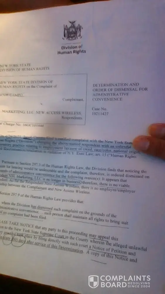 I jacob campo was employed self employed at nsl and access wireless did energy also door to door field and call center complaint about tablet phones baggage and id missing stoling also discrimination against me cause im christian and not homosexual harrassment against me then was tricked and struck by one employee tracey which is crime retaliation for a complaint made on company.Info I employees owner manager djibril niare [protected] and saling phones on street for cash for up to 50 dollars. Also ewmployee or managertraceyinfo on him instagram traylee feb 2021. Home 488 east 164street 3rd ave 7th floor apt 7e tracey homehis number [protected]. Also police report on tracey [protected]. Want these people investigated for harrassment and more arressted fired and penalized for abuse at work. Plus paid 25 dollars for phone never recieved it from assurance wireless employeesmarian kathleen jennifer peter jefferson that all promised me refund and cancelation that I never recieved.Confirmation numbers giving by emplopyees [protected] and [protected] also [protected]. Employees unperfessional wrong mean rude disrespectfull and need to be fired for lieing stealing and wasting my time when I have school and exams to take and study for. Called back numerous of time with in a time frame with in two to three weeks. Almost a month and a half tryna either recieve phone or get refund. The company should be shut down with the blood of jesus christ.
