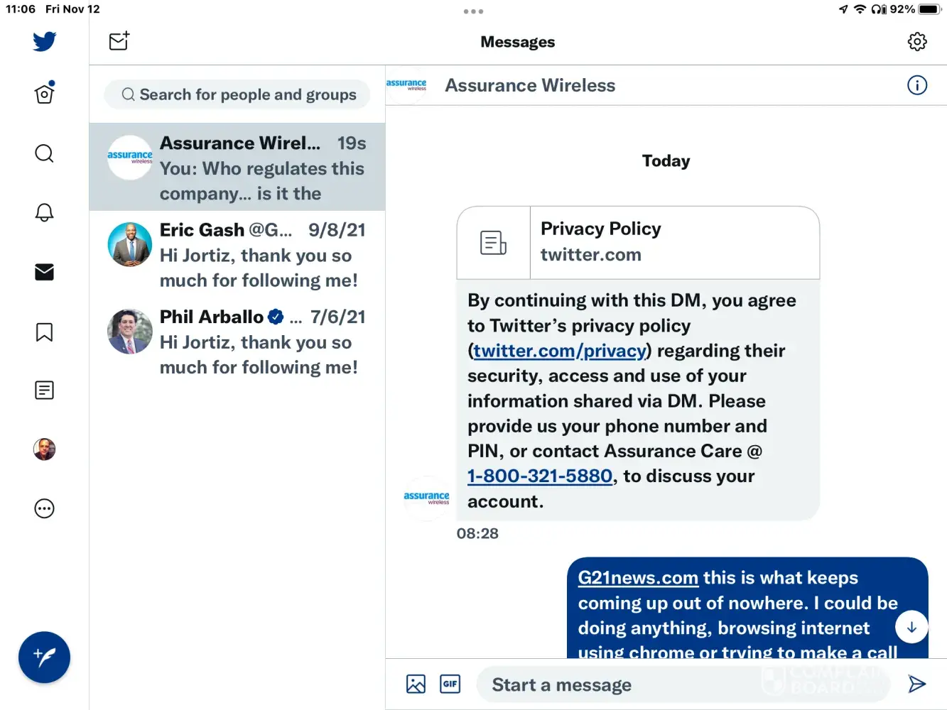 This phone call to Assurance Wireless was no different than the other two calls I placed, I was assured my account will be prioritized, that I will have my phone in one to two days (even though it hasn't even shipped yet). Also, they gave me a phone number with an area code that is not my area code, upon questioning them I was told when, or at this point, IF, I get my phone, I just need to call and they will get me a new number with the proper area code, I hope this is the case.