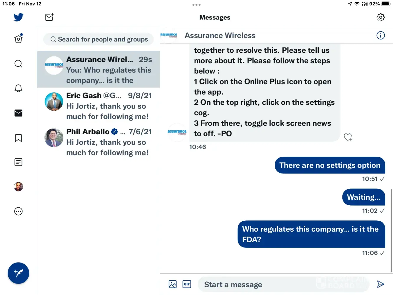 Desired outcome: I want to have Assurance Wireless send me my replacement phone that they promised me from the dump