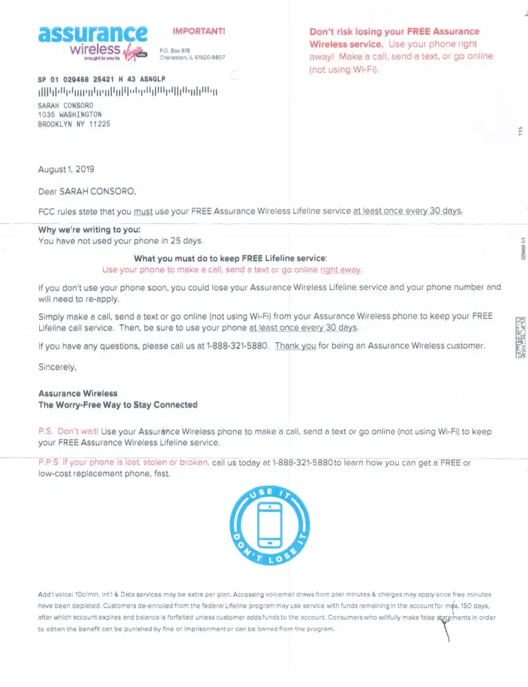 Why would Assurance send me a new phone if they hadn't verified that they had received my old phone 5 months prior? Why am I now being disconnected 7 months after returning my phone?