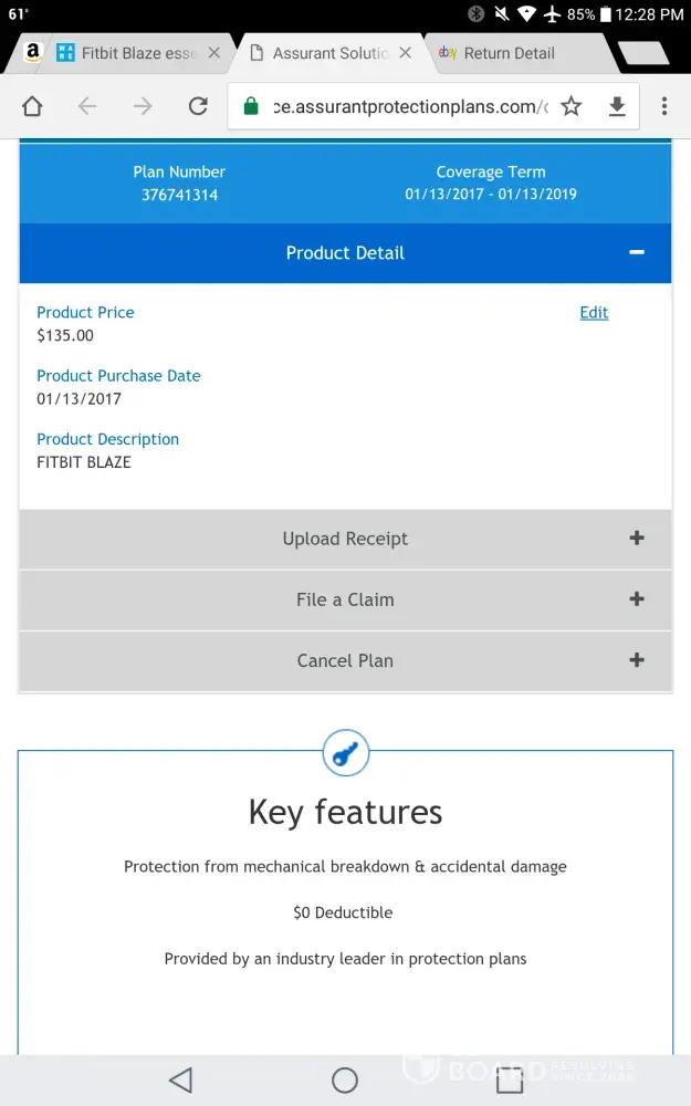 A year later I had an issue with the charging cord so I contacted the protection plan to see what my options were. They said to go to the store to determine if the problem was the connection jack or the cord itself. Turned out to be the cord, so I purchased a generic cord which has worked fine since.