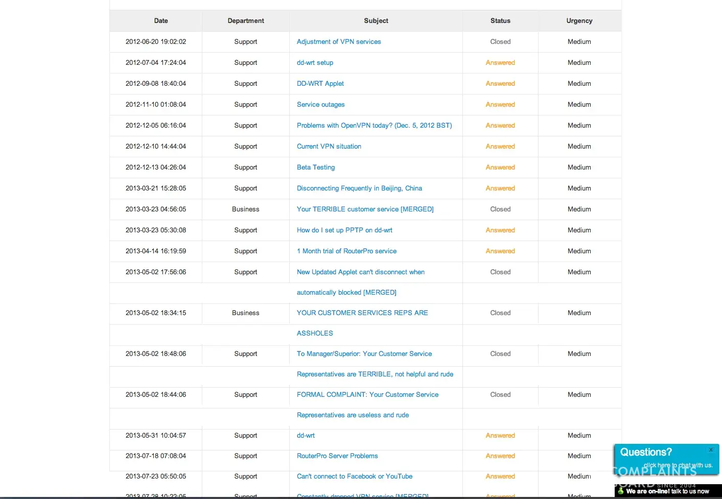 Customer service! Barely service. I'm not sure if they are non-native speakers, but over the course of 1.5 years, I've requested customer service a dozen or more times. Each time, i spent as much time outlining the problem, equipment and how it happened. 99% percent of the time, they would reply with a 1 sentence answer suggesting a basic action that I have already covered. They would pose it in the form of a question such as "did you reset the router?" which I would promptly tell them to "read the original email", and after that point I would get no response. If i was luck enough to get a response it would be something like "Don't threaten us" or "Don't talk like that to us or we will ban your account".