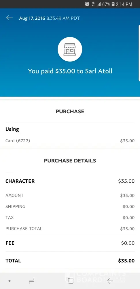 I have paid her via paypal and I would like a refund