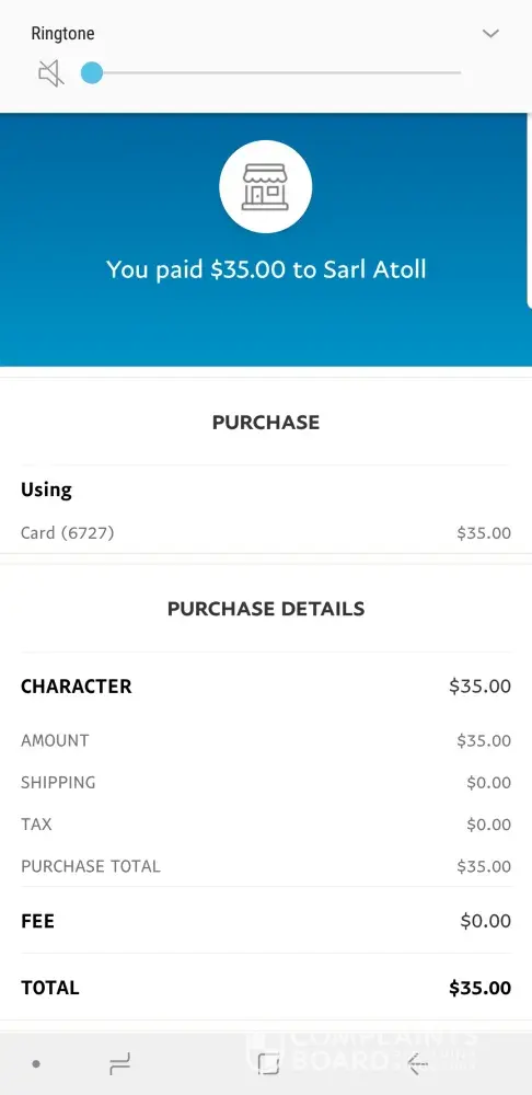 You sent a payment of $38.00 usd to sarl atoll