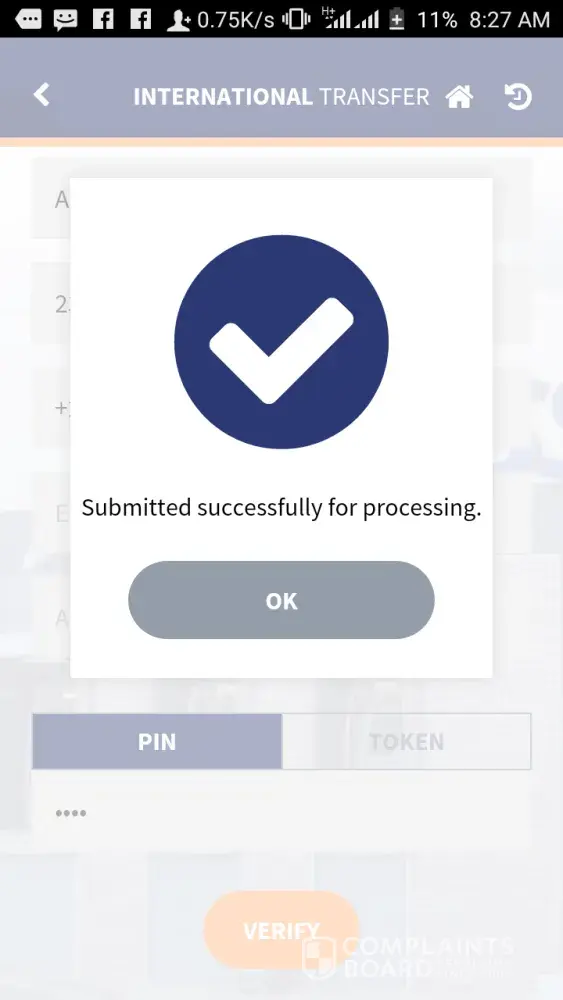 It may take a few moments for this transaction to appear in your account.