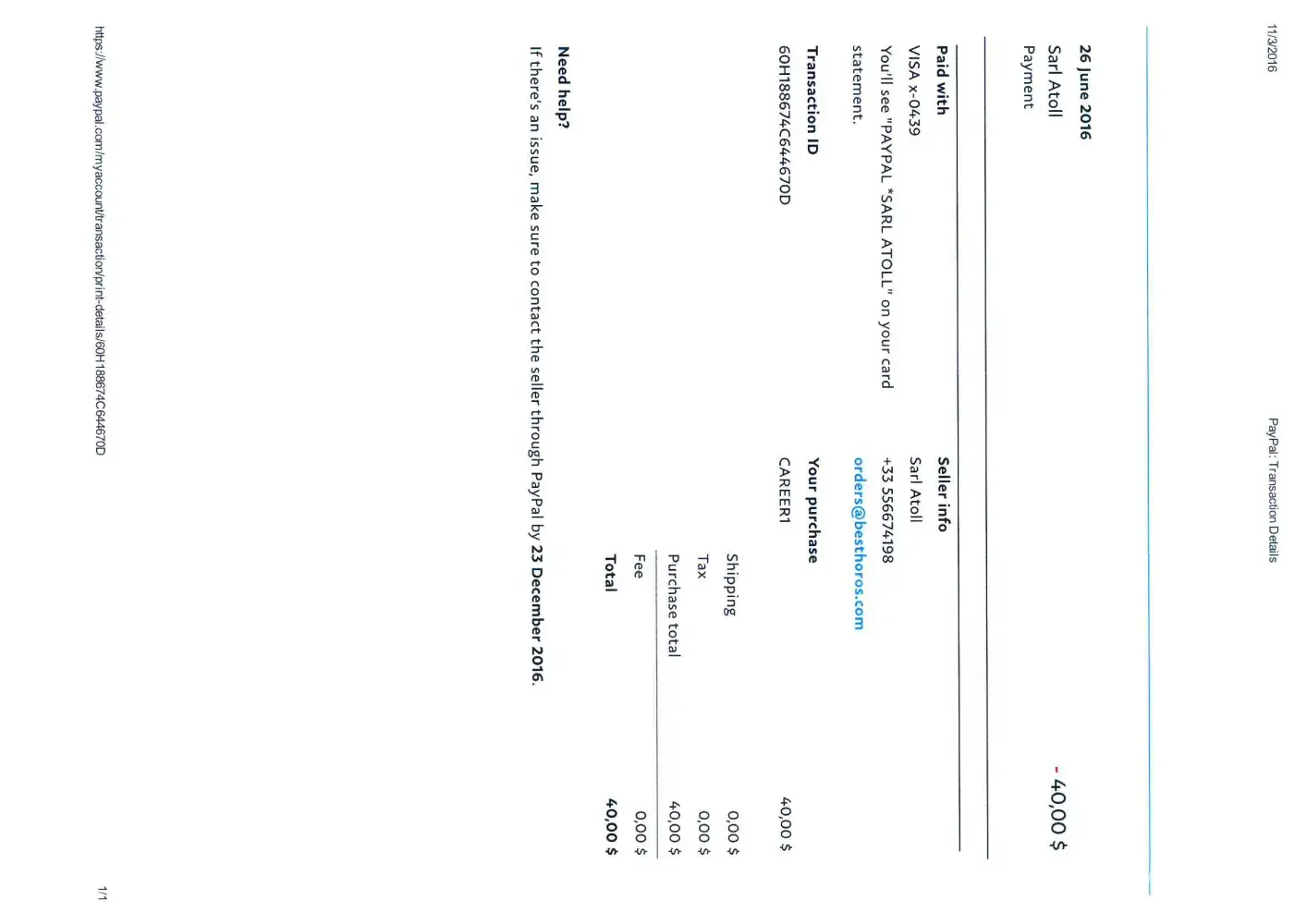 I had also attached the paypal receipt.