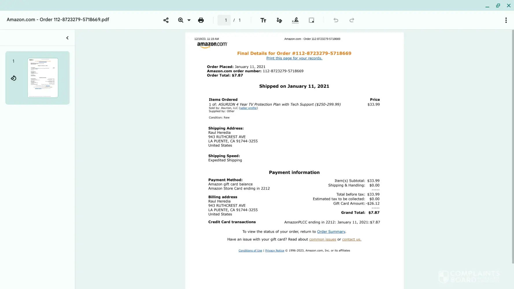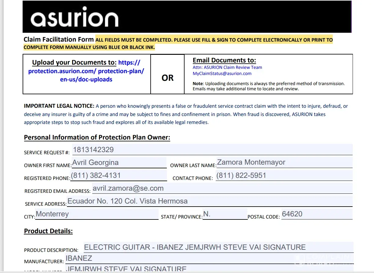 I am able to provide any additional information, copy of my receipts or Service Request. Thank you for receiving my claim to Asurion company.