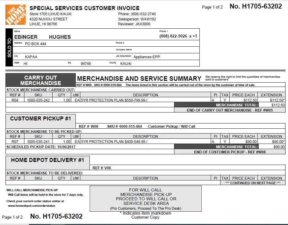 Appliance protection plan purchased through home depot