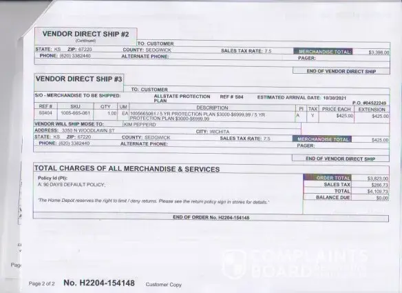 10/26/2021 Called HD protection plan [protected] about the issues and was informed it would take 2 business days for a decision by a supervisor under claim no [protected] and they would contact me in 2 days.