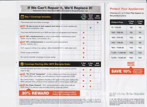 (6) 08/02/2021 Called Home Depot Appliance services protection plan.