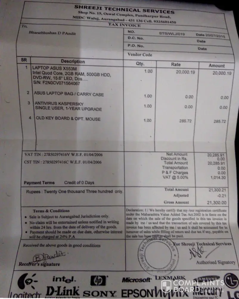 I have purchased ASUS ZE551 ML on dated 22/Oct./2015 from Hi-FLY InfoTech (Refer Attached Invoice copy).