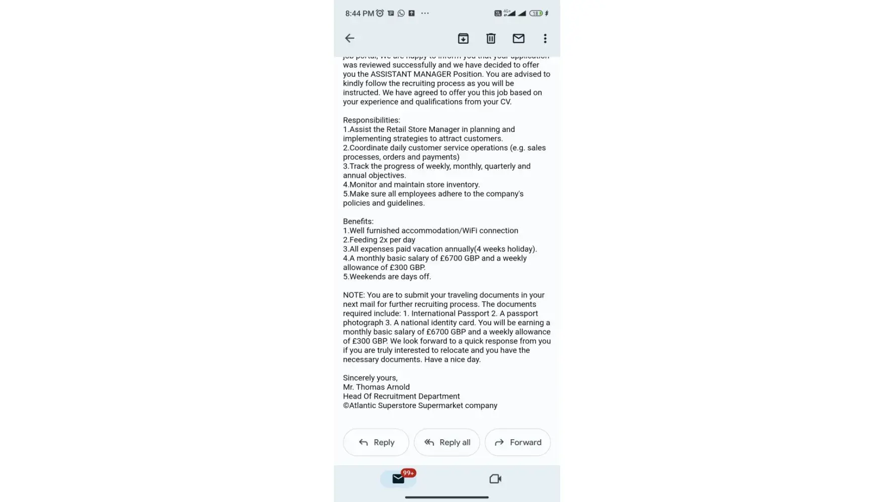 I have received an offer letter from Atlantic superstore Nottingham...wants to know whether it is true or not... please help me