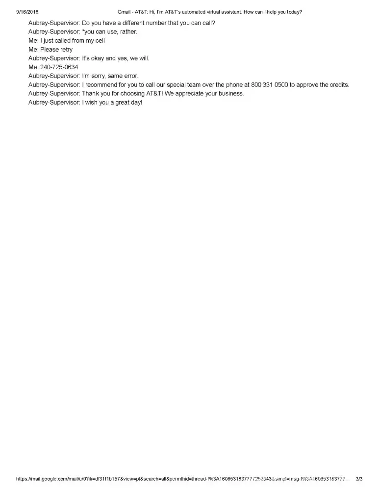 September 4th several times but, there were long waiting times each time I called because of the Holiday. I called again today September 5th around 8:15 only to be told they could not issue a Service Credit because, Technical Support could not confirm my Service Interruptions Times & Dates. My wife and I were very upset that all our services went out at the same time for so long (14 hrs Totaled) from 9/2/2018---9/3/2018. Also, for the 14 hrs my TV was out the message said AT&T Uverse was not available and to try again later or keep trying to "Restart" which I did until it came back on 9/3/2018 at 7:pm. I have been with AT&T for about 5 years now and this is the second time that I have had this type of problem. They did give me a Service Credit then but, now it seems I was the only one that experienced this and/ or I'm making this all up.