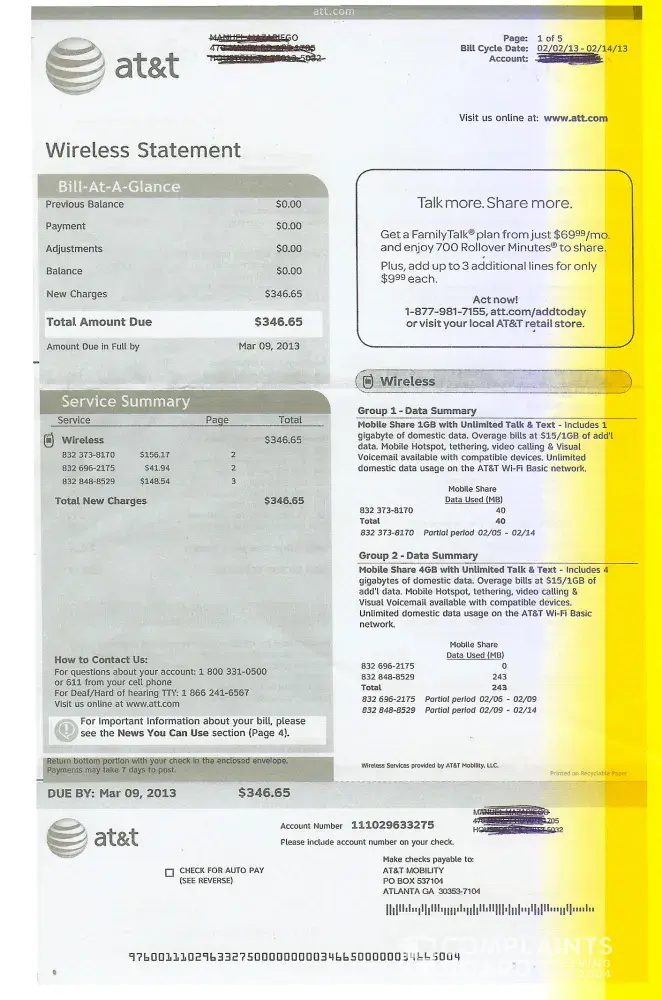 Now, AT&T has misbilled my account from day one. Several calls gave me some sort of "credit" but I could never figure out how they came up with the numbers, so I just ignored their "so-called credits" and just kept paying what I agreed to. The very first customer support person I talked to told me to pay what I agreed to and AT&T would get it straightened out in a few months. I did what she recommended. I paid exactly what the contract I signed and agreed to every single month. I paid early, every month. My bill grew larger and larger with bogus charges. Calls to customer service agreed there were a lot of problems, but no way to zero out my account because idiots run the show and can't do math. Eventually, AT&T sent me nasty "we are going to shut off your service" letters if I didn't pay the "overcharges" they accrued on me. I refused and just kept paying my correct bill early, every month, just like clockwork. (My overages are not up to about $33.00 overcharged after 13 months of service.) I have my original contract, every single one of my payment confirmations, and am ready to sue (it cost $75 to file the arbitration paperwork, but I'm ready to do it.) Calls to customer service don't help. The last (of 4) calls to fix this so far during the year, I endured threats and intimidation from a customer support "kid" who insisted my account was fixed and they had no plans to correct the overcharges any more. (Okay, he might have fixed the overcharges, but that didn't stop the fact that they were still overcharging me every month and the corrected problem would just continue..