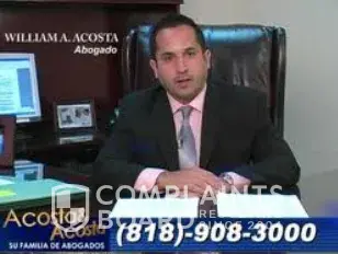 ACOSTA and ACOSTA attorneys. WILLIAM A. ACOSTA and MARIO L. ACOSTA WILLIAM are car accident attorney crooks! DO NOT CONTACT THESE ATTORNEYS! Van Nuys / Los Angeles California USA. ACOSTA and ACOSTA, attorneys WILLIAM A. ACOSTA (son) and MARIO L. ACOSTA (father). insufficiently educated incompetent “attorneys” BEWARE DO NOT HIRE THIS ATTORNEY. Son of...