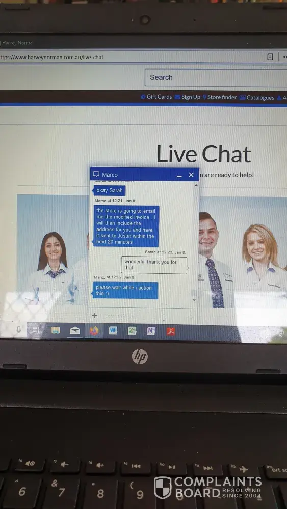 I then emailed them a copy of a tax invoice that was recently sent to us (22/12/2019!) The number is [protected]. I then called them to then be told the receipt I received was not valid or proof of purchase as it didn't have all the information that was necessary. At this point I am starting to get very annoyed! I was speaking to a customer service rep on Wed 8/1/2020 by the name of Marco and he assured me that he had spoken to the store and I would have the correct receipt (which should have been done at the time of purchase) showing the correct phone colour and all the relevant information to my husband's email within 20 mins. I will attach a copy of the screenshot that I took. My husband did not receive the email so I did the online chat AGAIN yesterday 09/01/2020 and eventually someone named Lisa answered who was extremely unhelpful.