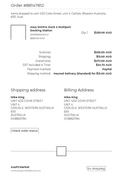 On the 29th of November 2023 I placed an order for a Asus SimPro Dock 2 Multiport Docking Station and paid through PayPal.