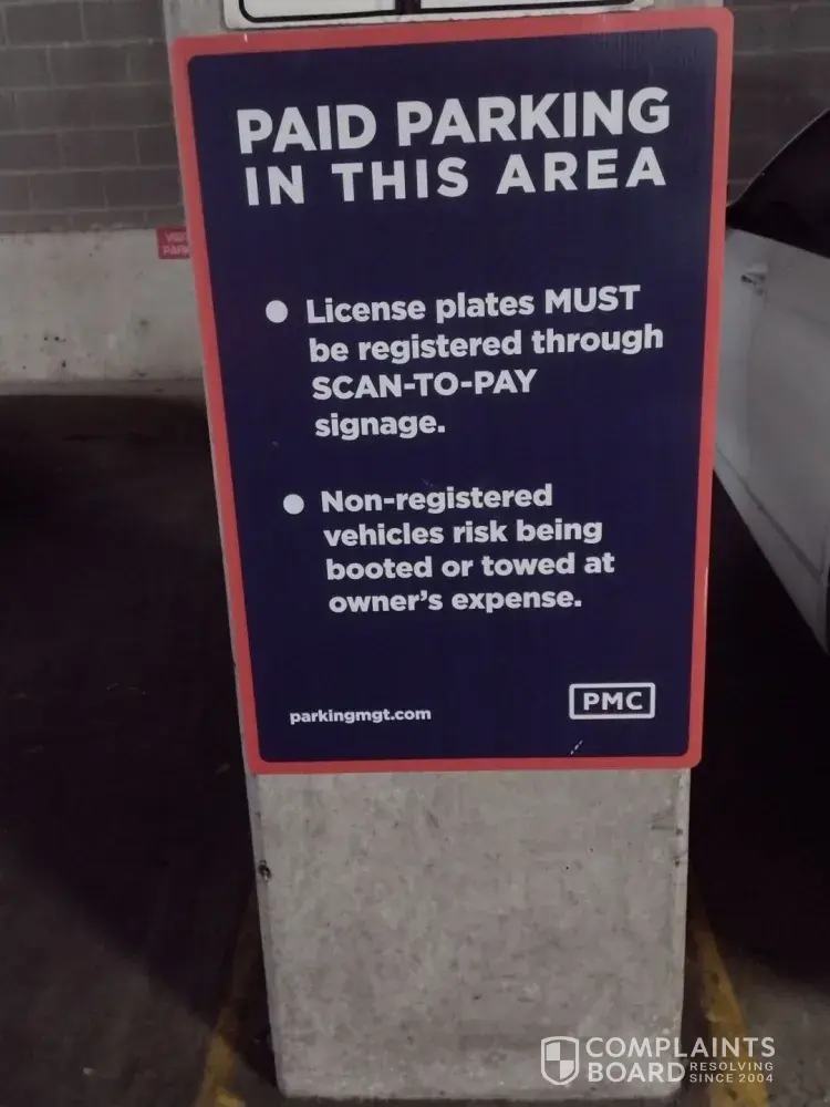 Notices advising against cash payments were present, but not prominently displayed, and the few signs with a QR code for payment were not visible from every parking space. We had parked in an area without a sign in sight, so when a man in a vest gave us a slip and directed us to a specific spot, there were no clear indications that he wasn't an employee. Furthermore, the email address on their ticket was invalid, and the phone number provided was a personal cell phone. This experience has left me questioning the legitimacy of the entire operation and whether it employs individuals posing as 'homeless' to deceive customers. All I wanted was for the booting fee to be addressed, as we had no intention of violating any parking regulations.