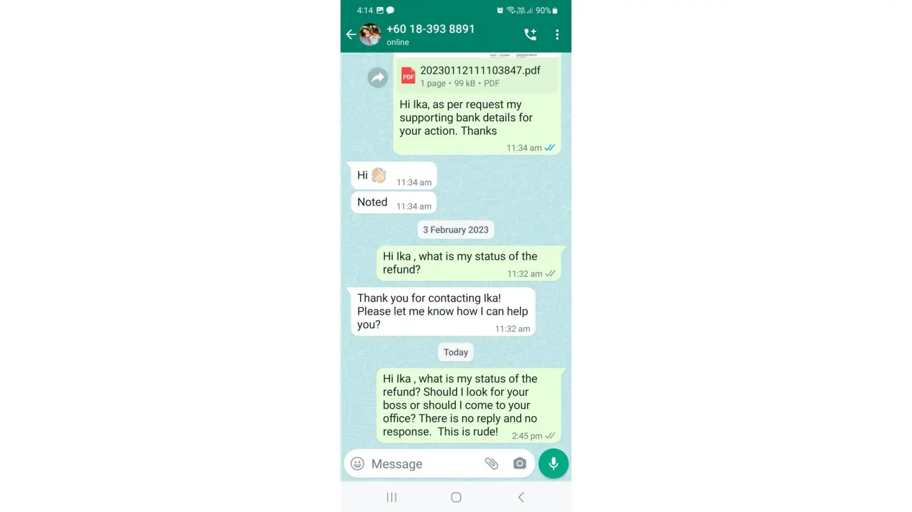Below is the email I have send out to them : I RESENT Request Refund URGENTLY