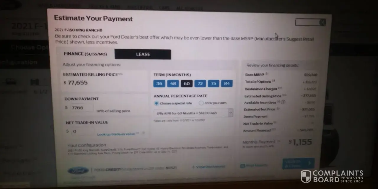 Ordered f-150 truck order code C955 and last 8 Vin nfb25577 on Dec 3, 2021 because there was a 0 0% 5yr promotional rate offered at the time. Was assured by ford that I would be locked in to that promo rate as it was offered on date I ordered the truck. I was told by dealer the truck would be delivered by Feb or March 2022. I waited for OVER A YEAR for the...