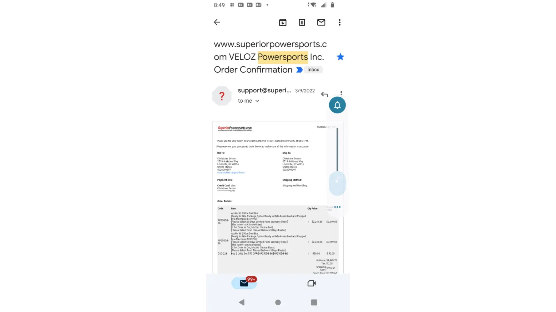 I ordered 2 Db36 dirt bikes with the ready to ride package for 5,000 plus dollars and never received the bikes my kids were devastated they charged my account so I tried calling and was told that they don't except orders for that much and they stopped answering after I sent a pic of the order confirmation and we never got our money back or the bikes very hurt by this company financially and mentally