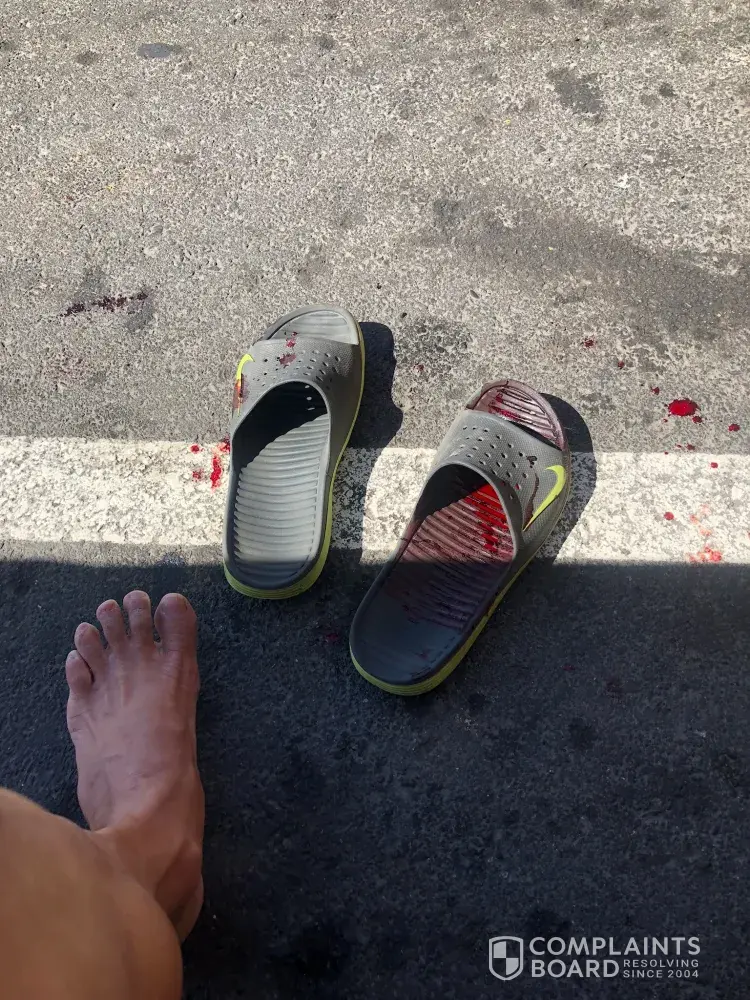 I was april 24, 2018 around 2:30pm-3:15pm when I went into your store have my battery checked to see if I needed a new one... Had it tested by one of your employees and battery checked no good, so went back in to buy a new one and paid for it... Than changed my mind and had charges credited back to my card and went back out to my car and I started talking to a guy that overheard what I was explaining to your employee what the problem was with my car and he made sence of what the problem was with my car... And yes... He said that battery was old and needed a new... So I went back in to the store to purchase the battery and as I was opening the door (it was a nice sunny day and was wearing sandles) I felt something hit my foot and did not pay much attention to it at the time when I went in and purchased the battery and did the transaction and took the new battery out to my car to install it and that's when I felt something wet in my foot, so I looked down and it was all blood, I was bleeding a lot... I had cut my small toe on my right foot very bad at the bottom of your door (the door thats marked "in" that is) where the flashing is, which has deteriorated worned out into a very sharp like knife object at the bottom left edge of the door.. Very dangerous, it happened to me it can happened to someone else, and did not recieved any help from your employees.