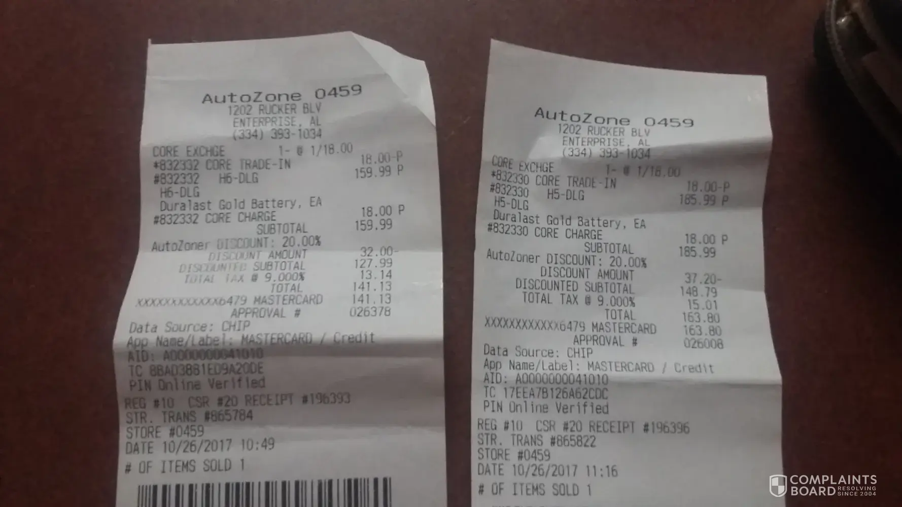 On October 26th 2017 I went to AutoZone to get a battery for my 2014 Hyundai Accent I was charged one price and was found out that that battery was not the correct battery for my car so they said they was going to credit back my credit card the $141 approximately and they charged me $161 for the correct battery I have yet to have the $141 credited back to my credit card