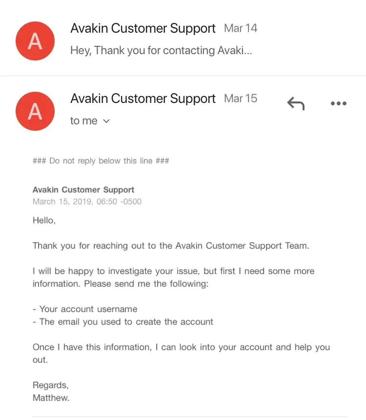 ### Do not reply below this line ### Avakin Customer Support June 11, 2018, 09:11 +0100 Hello,