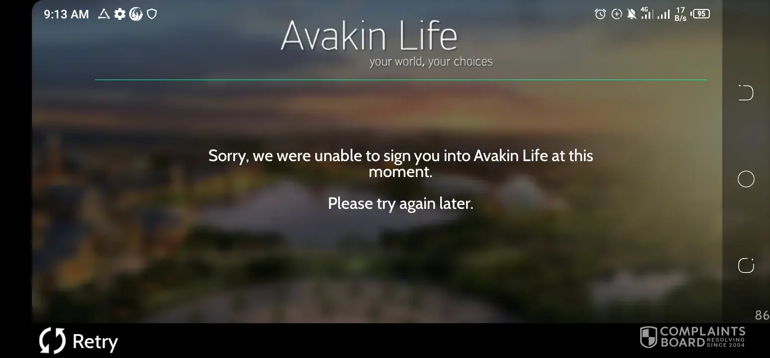 "Login Failed Sorry, we were unable to sign you into Avakin Life at this moment. Please try again later"