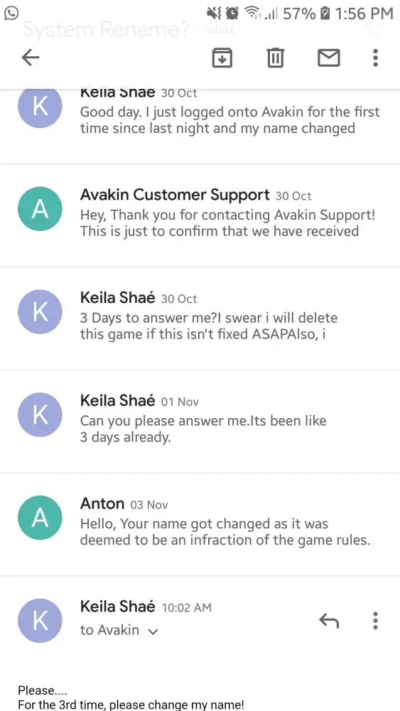 It took Avakin about 4 days to answer me and it was "Anton" who responded to my Email.