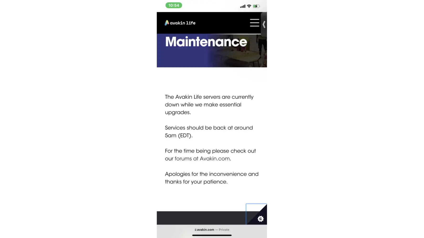 Literally same! My game loads past the first screen then stops at the second. It always stops at 4 % My irritation and suspension grows the more I have to email lockewood for help. I have not been helped in two days! This is the third day! That is way more than the 28 hours promised in the email that was generated as a response to asking for help. It never solved my problem. I have tried EVERYTHING! Plugging the router in and out to reset the wifi did NOT help, switching from cellular to wifi did NOT help, switching from wifi to cellular did NOT help, having someone else log into my account in my family did NOT help, Deleting the app and reinstalling it (3x) did NOT help, and finally contacting Avakin support did NOT help! I have spent 4 years paying real money for this game. I have worked so so hard to get to where I am in this game. I miss my friends and family! I finally received a reply this morning and it said that they are aware of the problem and are working it. I’m not sure if this is updated currently but this is on Avakins website (see picture below).