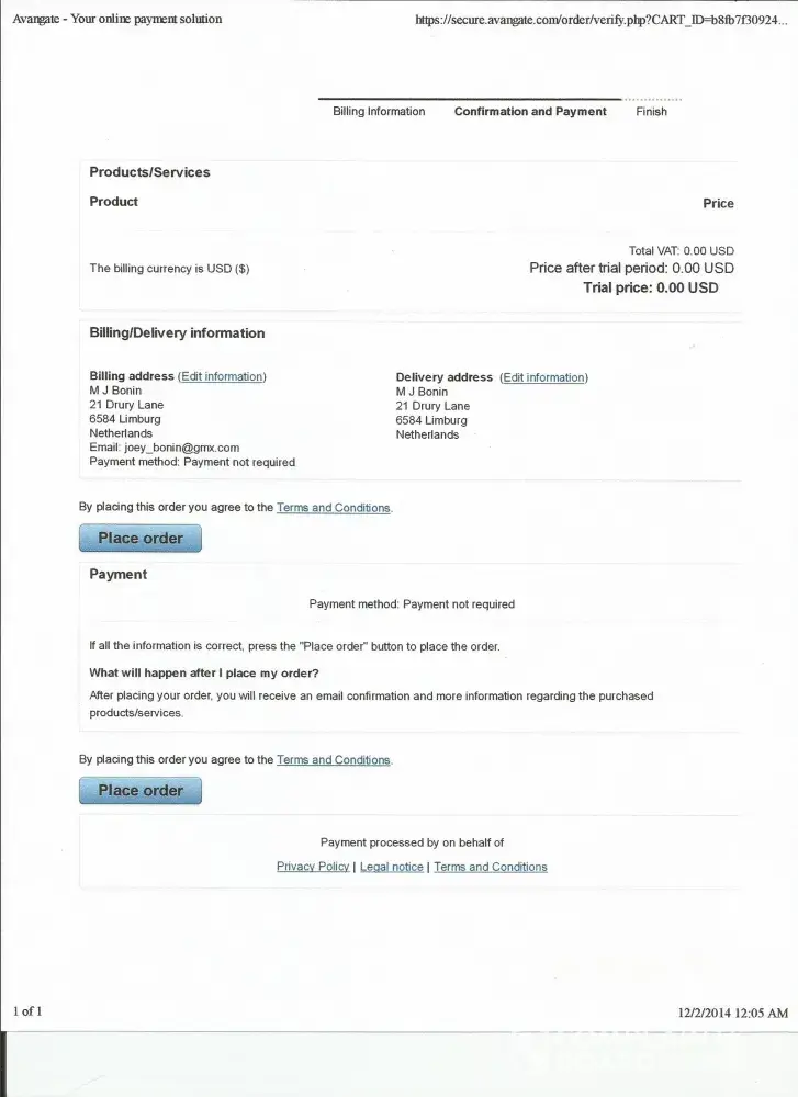 I bought a product using Avangate services,