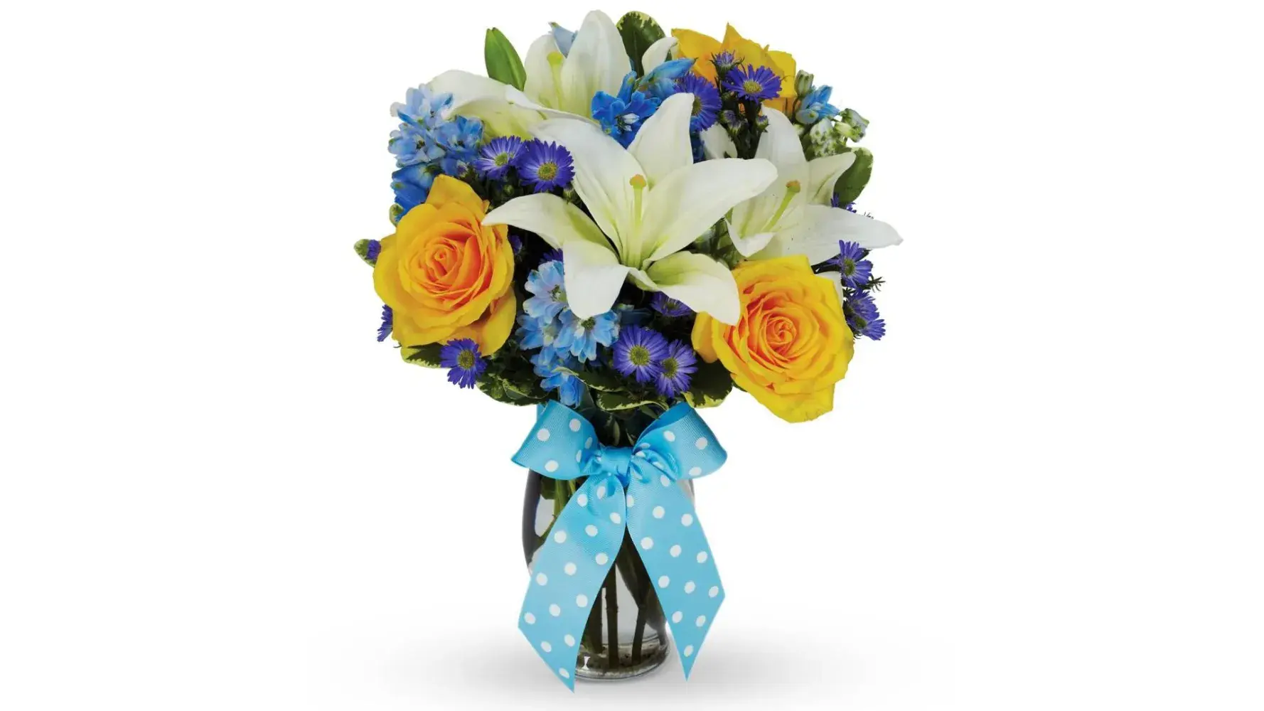 I ordered a bouquet medium size with a baby boy theme, blue bow and it's a boy on line 4-11-22 for deivery 4-12-22. cost of 59.99 but taxes, delvery and service fee equaled 105.75. What was delivered was half of the flowers seen in the photo and smiley baloon. Nothing to do with a baby boy. The service references their substitution policy on fresh flowers. I understand what is not available, but substitute enough volume and at least include a blue bow. This service is a scam. I personally would like to only pay for what I thought it was worth. No great than $60.00 fees included.