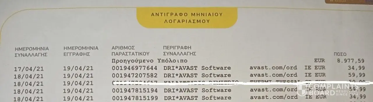 You paid $68.04 USD to DRI*AVAST SOFTWARE