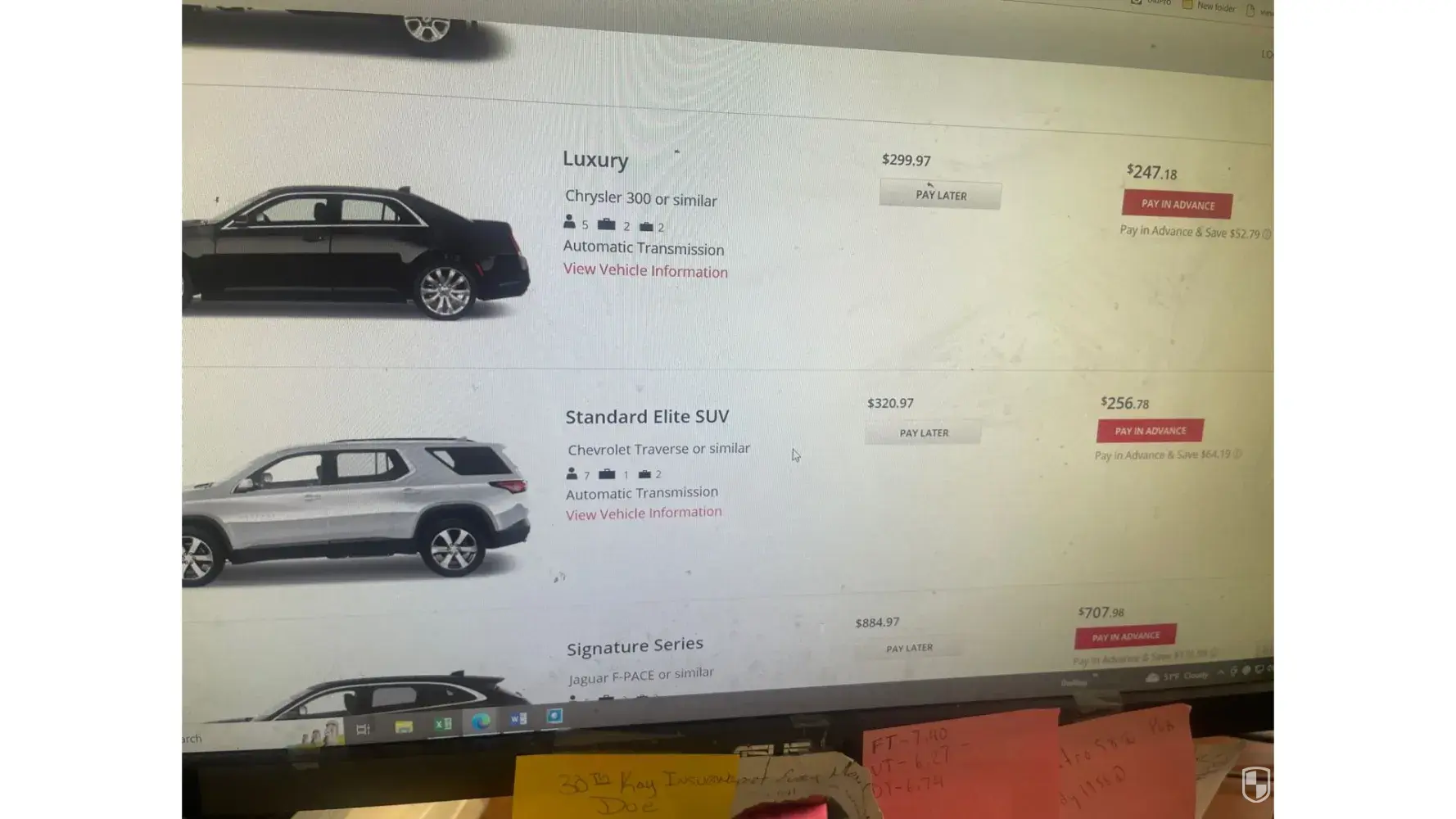 Original 3 day rental w/taxes & fees: $308.37