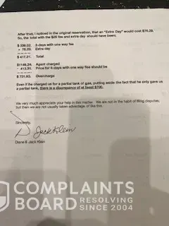 Car rental overcharge