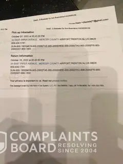 Car rental Oct. 7-10 Trenton Airport, 34 East Piper Ave.