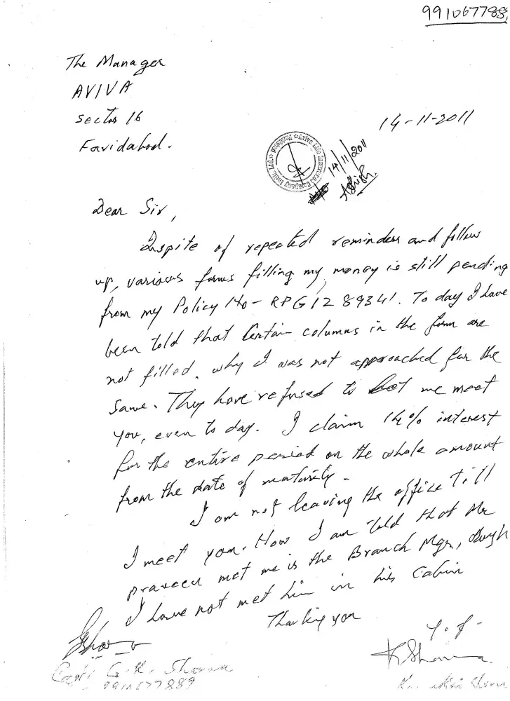 We would like to help address your issue. Please write in to us with your policy details on customerservices@avivaindia.com and we will investigate your concern and revert.